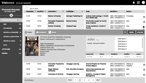 Visual Design, Wireframing, InteractionsVersion 1.0 of the NEW Booklist Manager portal.
