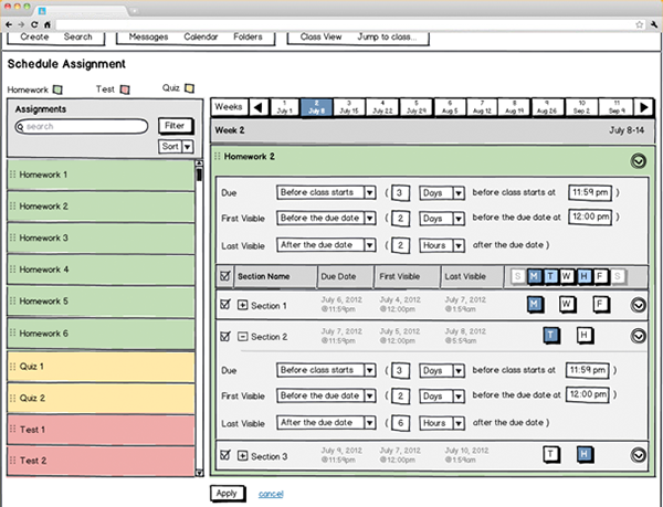 Behance onlineInitial wireframing prior to finalized UI for Faculty Scheduling and Course Cloning to drive new business, decrease internal implementation costs and Improve customer retention.