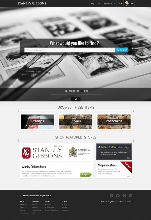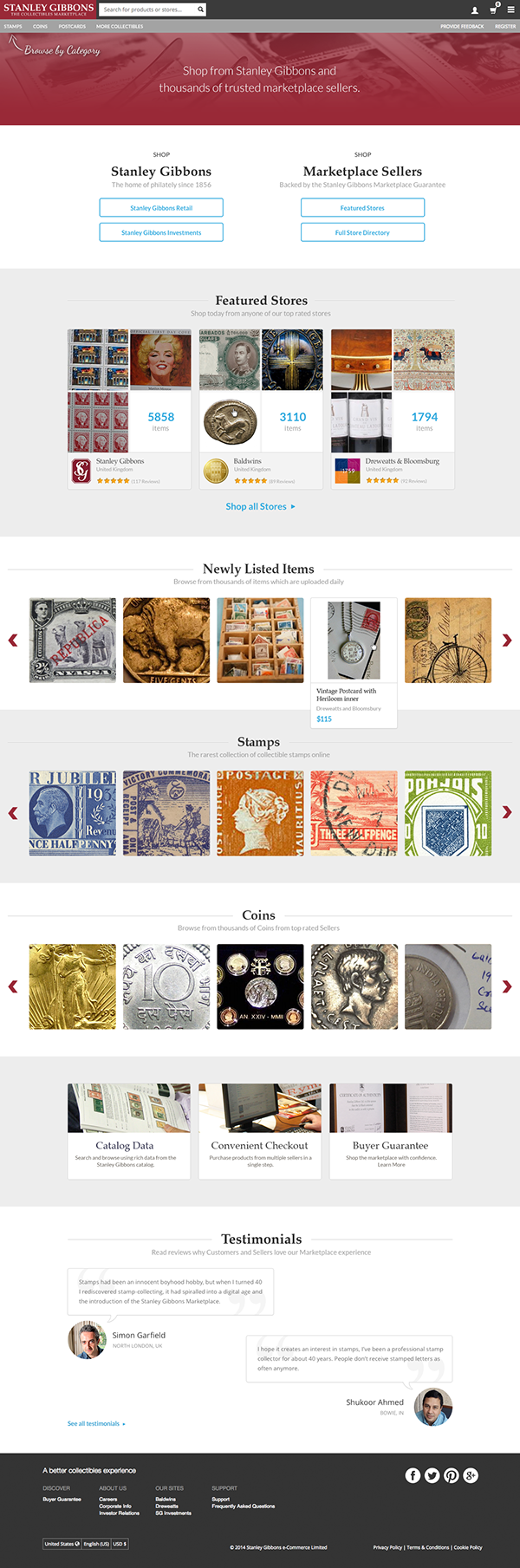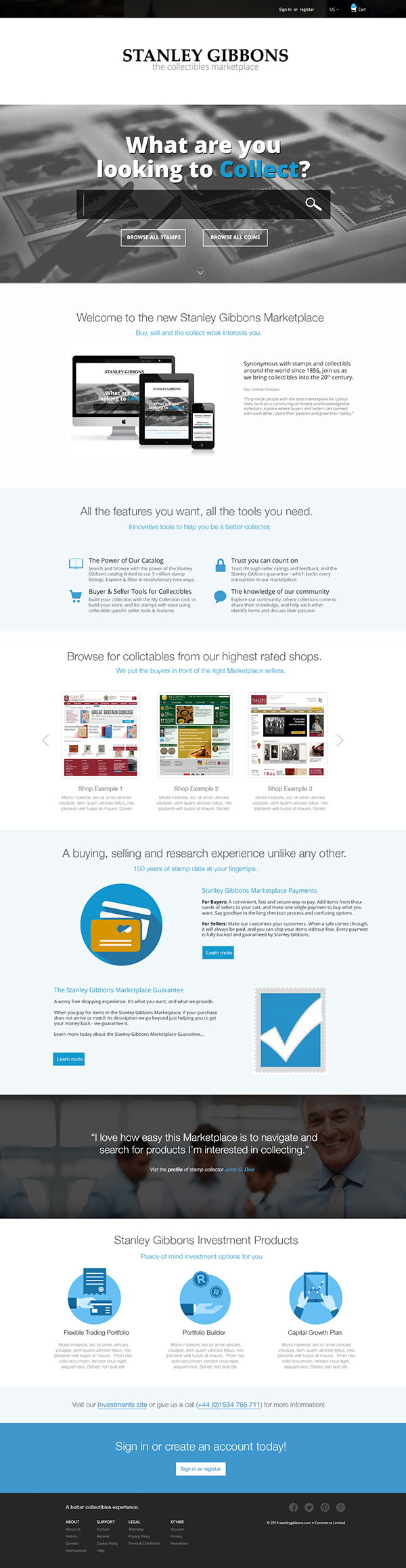Behance onlineComplete redesign overhaul and branding efforts for the NEW Stanley Gibbons Marketplace ecommerce site. These examples are a few options which were presented for the Landing Page.